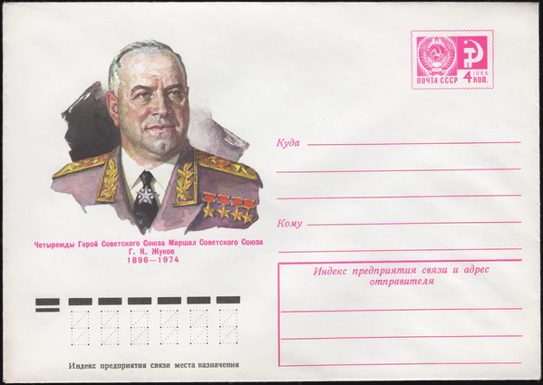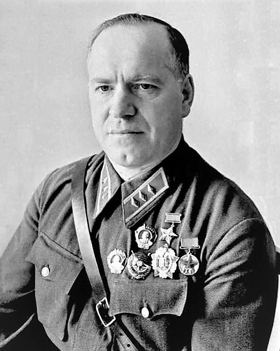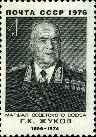 Гео́ргий Константи́нович Жу́ков (19 ноября (1 декабря) 1896; Стрелковка, Малоярославецкий уезд, Калужская губерния, Российская империя — 18 июня 1974, Москва, РСФСР, СССР) — советский полководец и государственный деятель. Маршал Советского Союза (1943), четырежды Герой Советского Союза (1939, 1944, 1945, 1956), кавалер двух орденов «Победа» (1944, 1945), Член Президиума ЦК КПСС (29 июня—29 октября 1957) . Главы военных ведомств СССР (1955—1957).