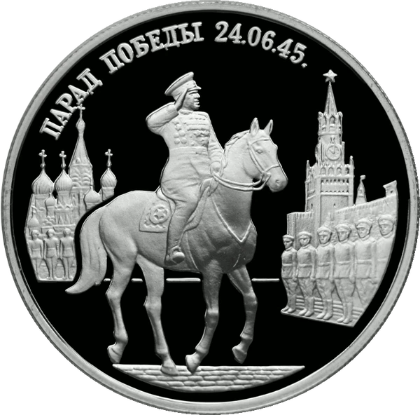 На трибуне мавзолея Ленина присутствовали Сталин, Молотов, Калинин, Ворошилов и другие члены Политбюро. От имени и по поручению Советского правительства и ВКП(б) Георгий Константинович поздравил доблестных советских воинов «с Великой Победой над германским империализмом»[23].