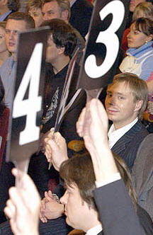 Каждый член жюри после окончания очередного конкурса обязан оценить одной отметкой выступление каждой команды. Для каждого конкурса есть свой балл-максимум, который ведущий напоминает для жюри перед выставлением отметок.