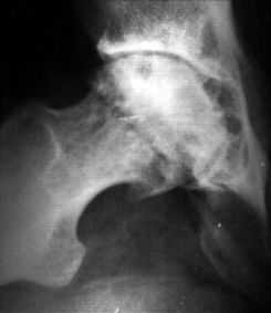 Группа заболеваний различной этиологии, в основе которых лежит поражение всех компонентов сустава: хряща, субхондральной кости, синовиальной оболочки, связок, капсулы и околосуставных мышц. Первичный коксартроз — возникает без явных внешних причин; вторичный — как последствие фемороацетабулярного импиджмента, дисплазии тазобедренного сустава, травм и других болезней тазобедренного сустава. В развитии коксартроза сочетается воздействие метаболических расстройств, наследственной предрасположенности, возрастных изменений, аномалий сосудов, избыточного веса, неблагоприятных условий окружающей среды и труда. Заболеваемость посттравматическим коксартрозом среди лиц старше 35 лет достигает 10,8 %, среди лиц старше 85 лет — 35,4 %. Симптомы: боль, усиливающаяся при движениях или нагрузке на сустав, хромота, необходимость в опоре на трость, затруднения при вставании, подъёме или спуске по лестнице. По мере прогрессирования развивается контрактура тазобедренного сустава[5].
