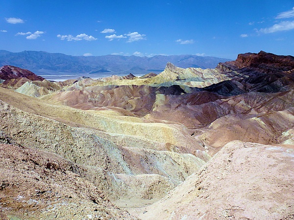За миллионы лет до фактического затопления и расширения Долины Смерти, а также до существования озера Мэнли (англ. Lake Manly), другое озеро занимало большую часть Долины Смерти, включая местность Забриски-Пойнт. Это древнее озеро начало формироваться примерно девять миллионов лет назад. В течение нескольких миллионов лет существования озера осадки собирались на дне в виде солевой грязи, гравия, образовавшегося в результате естественного разрушения близлежащих гор, и вулканического пепла от активного в то время вулканического поля Чёрных Гор (англ. The Black Mountains). Климат местности, где располагалось озеро, был сухим, но не настолько сухим, как в настоящее время. Верблюды, мастодонты, лошади, плотоядные животные и птицы оставляли следы в грязи на берегу озера, вместе с ископаемыми травами и тростниками. Бораты, которые составляли большую часть исторического прошлого Долины Смерти, формировались в озёрных водах из вод термальных источников и изменений риолита в близлежащем вулканическом поле. Выветривание и термальные воды также участвовали в формировании разнообразия цветов местности.