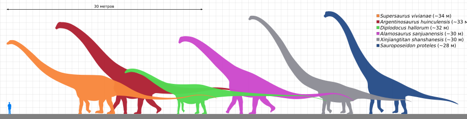 Хотя завропосейдон, по разным оценкам достигавший при жизни от 27 до 34 м в длину[8][13][2], не входит в число самых длинных или самых тяжёлых динозавров, он, вероятно, был самым высоким среди известных на данный момент. Вероятно, завропосейдон мог поднять свою голову на высоту 17—18 м над землёй, что позволило бы ему, по словам Веделя и Сифели (2005), «заглянуть в окно шестиэтажного дома»[8]. Мамэньсизаврид синьцзянтитан[14] (Xinjiangtitan) мог быть близок к завропосейдону по высоте; Молина-Перес и Ларраменди (2020) оценили его высоту в 17 м[15].