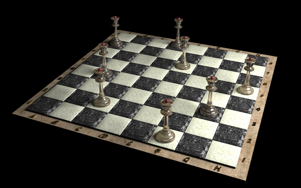 Строго математически задачу можно сформулировать несколькими способами, например, так: «Заполнить матрицу размером нулями и единицами таким образом, чтобы сумма всех элементов матрицы была равна 8, при этом сумма элементов ни в одном столбце, строке или диагональном ряде матрицы не превышала единицы».