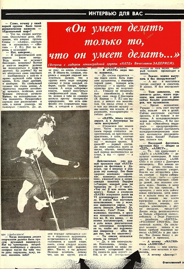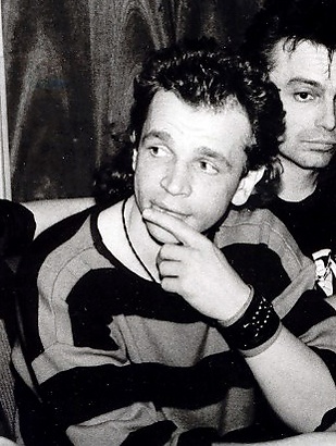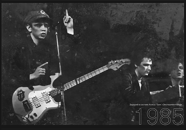 Кроме него, кстати, ни у кого в группе косой чёлки не было. Можно увидеть его в фильме "Переступить черту"Светлана Синельникова, http://www.zaderij.ru/rock_clab_alisa_tamburin_1984.html