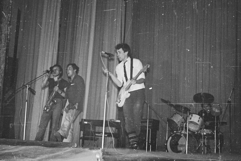 Попросили нас сыграть для местной публики - на танцах для студентов. Мы nереоделись.