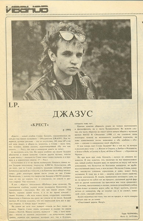 В 1991 Задерий создал студийный проект "Джазус Крест", в котором участвовали Игорь Спицын (гитара, вокал, клавиши), автор-исполнитель из Екатеринбурга Александр Холкин и струнник Аквариума Иван Воропаев. Альбом был записан на студии "Титаник" в Петербурге, сведен и спродюссирован лидером Звуков Му Пётром Мамоновым. Официальное издание от Отделения "Выход" появилось в 1996 году.