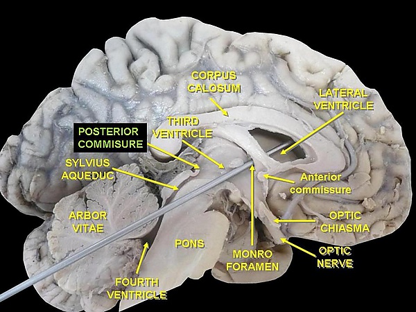Задняя комиссура (известная также как эпиталамическая комиссура) — это закруглённая полоса волокон белого вещества, пересекающая межполушарную среднюю линию в дорсальной верхней части водопровода мозга. Она важна для поддержания согласованной двусторонней реакции зрачков на свет.