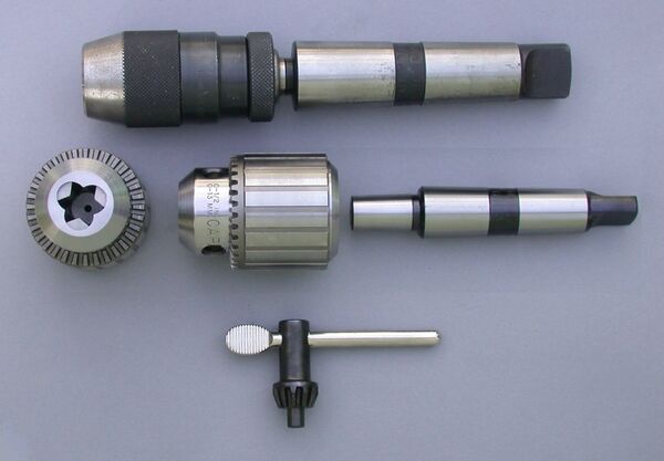Как следует из названия, такой патрон применяется для закрепления сверла на оси шпинделя станка. Эти патроны используются также в ручных дрелях.