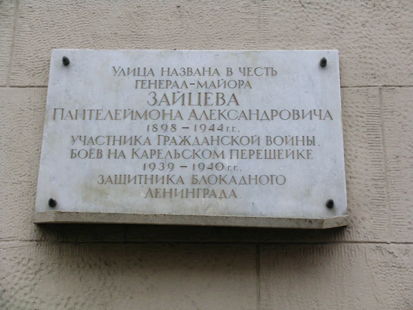 В память Пантелеймона Александровича Зайцева названы улица Зайцева (Кировский район, Санкт-Петербург) и посёлок Зайцево (Выборгский район Ленинградская область), а также установлена мемориальная доска на улице Зайцева.