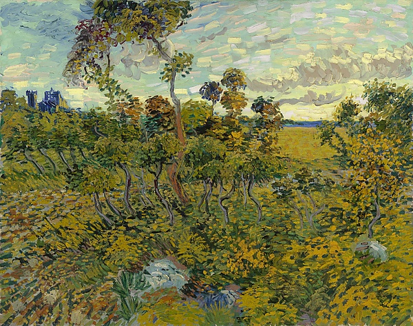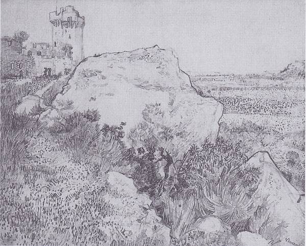 Оригинальный текст (фр.)[показатьскрыть]Hier j’étais au soleil couchant dans une bruyère pierreuse où croissent des chênes tres petits et tordus, dans le fond une ruine sur la colline et dans le vallon du blé. C’était romantique, on ne peut davantage, à la Monticelli, le soleil versait des rayons tres jaunes sur les buissons et le terrain, absolument une pluie d’or. Et toutes les lignes etaient belles, l’ensemble d’une noblesse charmante. <…> Les terrains semblaient violets, les lointains bleus. J’en ai rapporté une étude d’ailleurs mais qui reste bien en dessous de ce que j’avais voulu faire.