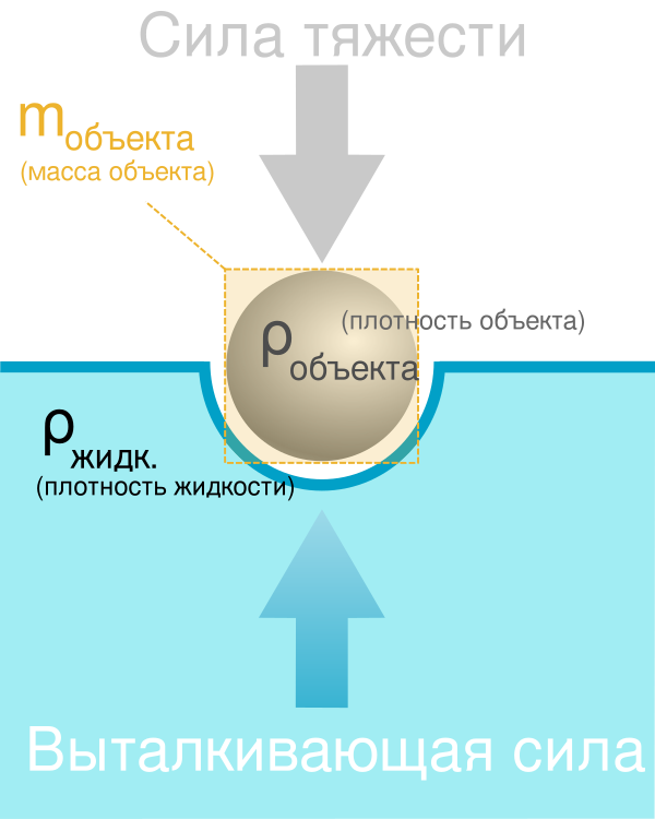 По закону Архимеда величина выталкивающей силы определяется по формуле[3]: