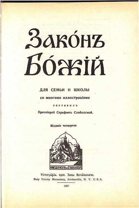 - Закон Божий : Для семьи и шк. со многими ил. / Сост. протоиерей Серафим Слободской. - [Репринт. изд.]. - Москва : Даниловский благовестник., 1995. - 723 с.