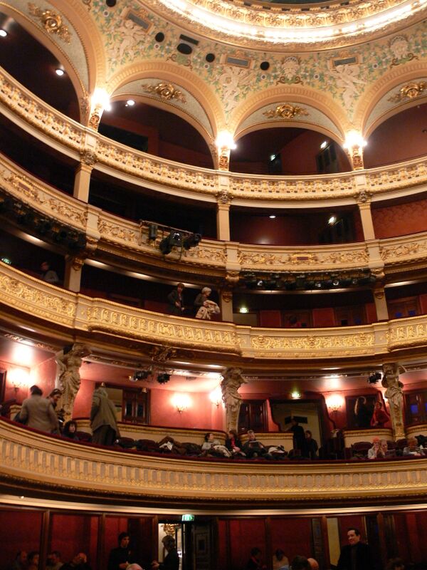 В соответствии с необарочным стилем здания для украшения фойе театра были заказаны весьма фотореалистичные аллегорические картины, и, несмотря на финансовые ограничения, декораторам удалось создать интерьер чрезмерной роскошный, особенно что касалось его сценической части[4]. У критиков облик нового театра вызвал смешанные отзывы: рационалисты критиковали его за «безумное легкомыслие» дизайна, а традиционалисты защищали его как вполне подходящий для оперетт[4].
