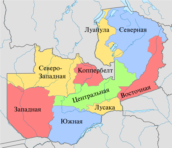 Речная сеть густая и разветвлённая. Св. 4/5 территории страны принадлежит бассейну р. Замбези. От своего истока на северо-западе Замбии р. Замбези сначала выходит за пределы З., но к югу от 12°30' ю. ш. протекает по юго-западной части страны и вдоль её южной границы, принимая крупнейшие притоки Кафуэ и Луангва. Ниже впадения р. Чобе (Линьянти) на Замбези расположен водопад Виктория — один из крупнейших в мире по ширине.[7]