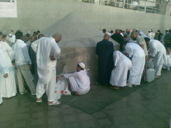 По преданию, когда Хаджар оказалась на месте современной Мекки, она начала искать воду между холмами ас-Сафа и аль-Марва. Ангел Джибриль (Гавриил) ударил своей ступнёй (или крылом), и из этого места чудесным образом образовался источник Замзам[1]. Участок между Замзамом и Макамом Ибрахима, по одному из мусульманских преданий, считается местом захоронения пророков Шуайба, Салиха, Нуха и Худа[5].