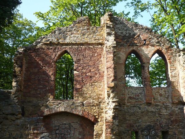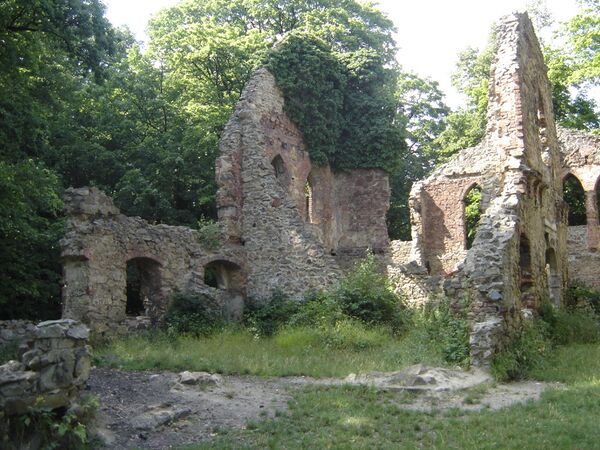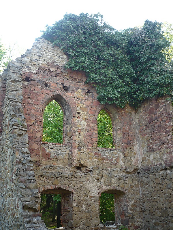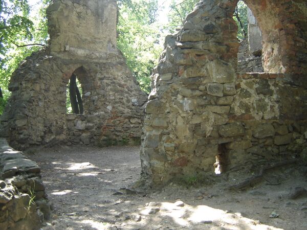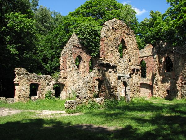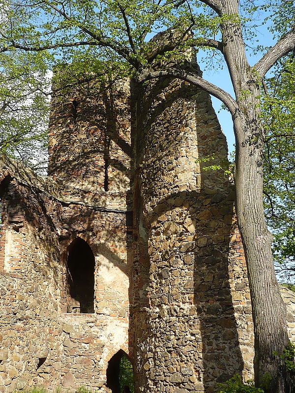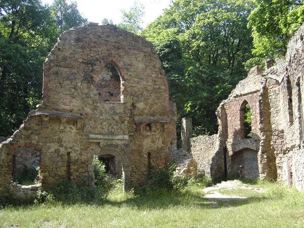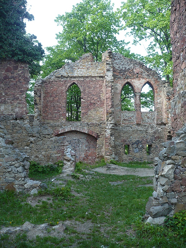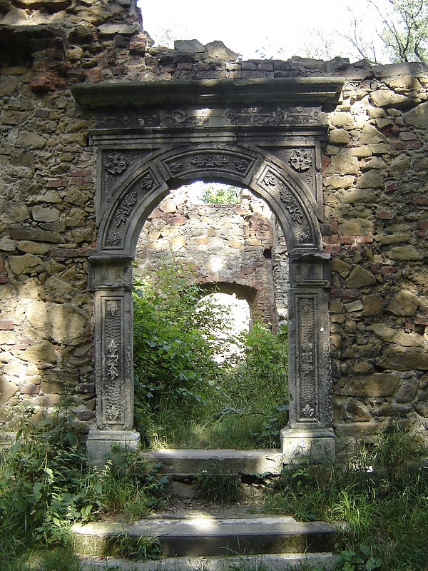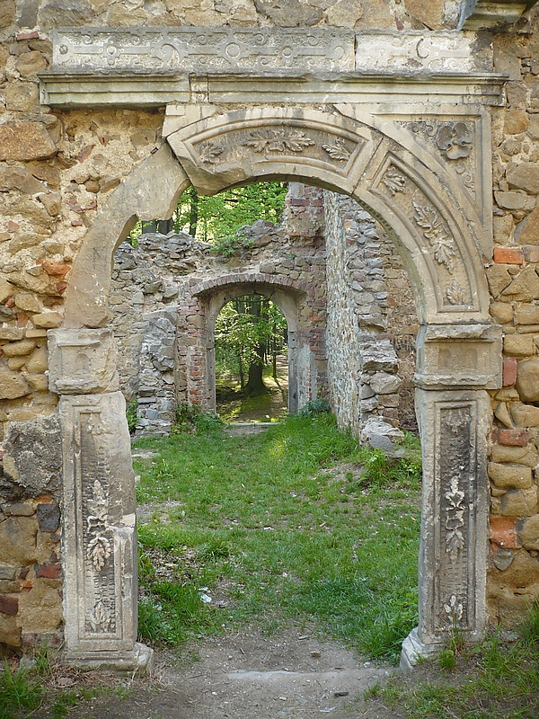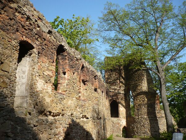 В 1794—1797 годах владелец замка «Князь» Ганс Генрих VI фон Гохберг поручил архитектору Кристиану Тишбайну обустроить окрестности замка над рекой Пелчницой и перестроить существующие остатки руин древнего замка в романтическом стиле для князя Ганса Генриха IV фон Хохберга[2]. Целью строительства была инсценировка средневекового окружения вокруг замка «Князь». После войны замок, подожженный советскими войсками, сгорел летом 1945 года[2]. До нашего времени сохранилась искусственная руина конца XVIII века с остатками главного замка с сохраненным внутренним разделением[2]. При этом в здании нет потолков, а от замковой башни сохранились лишь фрагменты[2]. Также сохранились два ренесансных портала и часть древней стены галереи, ведущей к часовне, от которой остались только стены и остатки башни часовни[2].
