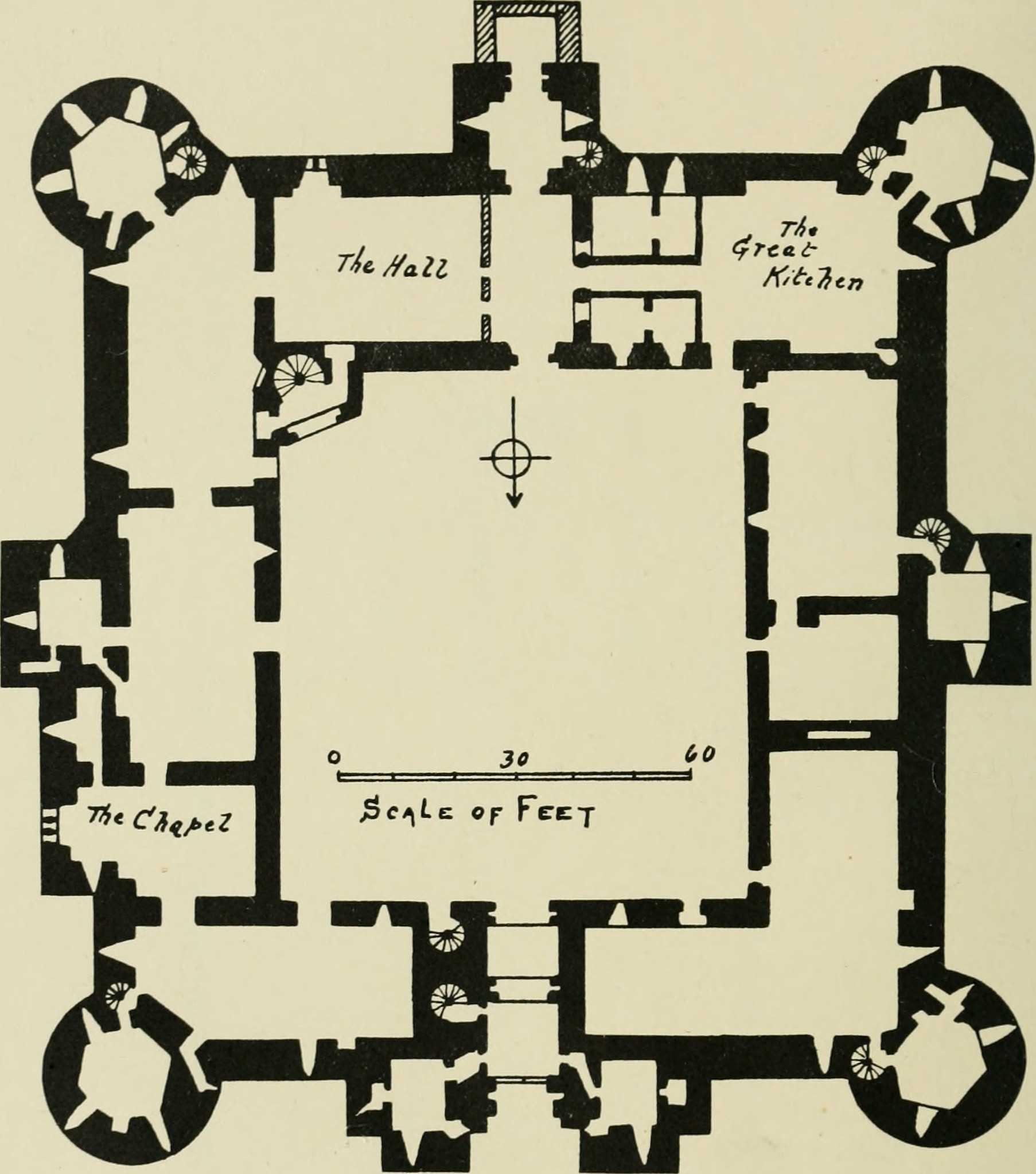Четырёхугольный замок имеет приблизительно квадратную форму. Этот тип замка с центральным внутренним двором и зданиями рядом с наружной стеной, был характерен для замков 14 века. Замок имеет четыре круглые башни и три квадратные центральные башни на юге, востоке и западе стены. Главный вход в замок располагается в середине двух башен-сторожек.