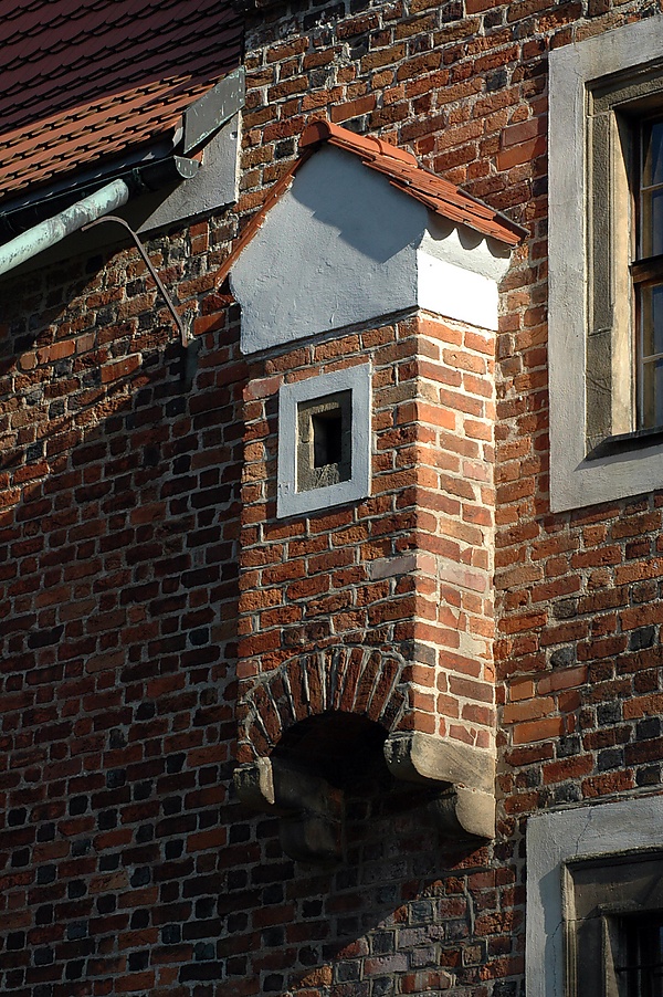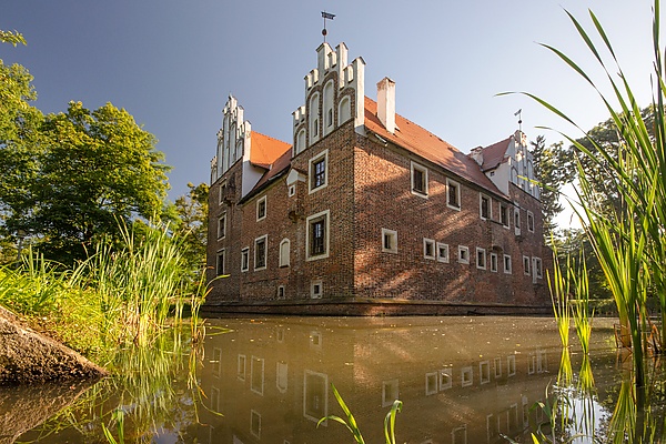 Замок сначала напоминал снаружи подкову, которая располагалась на прямоугольном участке размерами около 22 × 24 м. С первой половины XVI века он уже имеет четыре крыла и внутренний двор. Замок был окружен рвом, а въезд в него осуществлялся сначала через подъемный, а позже — кирпичный мост с северной стороны. Для построения замка был использован кирпич, только отдельные архитектурные детали, такие как оконные рамы и ренессансный портал с гербами рода Бонеров, были сделаны из песчаника. У ворот располагается высокая башня, которая в наше время увенчана кренеляжем, крылья замка имеют ступенчатые фронтоны. В окруженном аркадами дворе находится колодец. С восточной стороны сохранились туалетные эркеры.