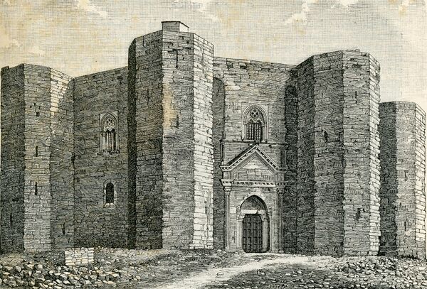 Кастель-дель-Монте часто называют известнейшим замком мира, однако это сооружение не является замком в точном значении этого слова. У него отсутствуют ров, вал и подъёмный мост. Нет также помещений для припасов, конюшен, отдельной кухни. Необычен вход в замок, который выполнен как портал готического храма. Функциональное назначение замка загадочно. Ранее предполагалось, что он был задуман как охотничья резиденция императора, однако внутренние помещения были, по мнению некоторых исследователей, слишком богато украшены и обставлены для «охотничьего домика».