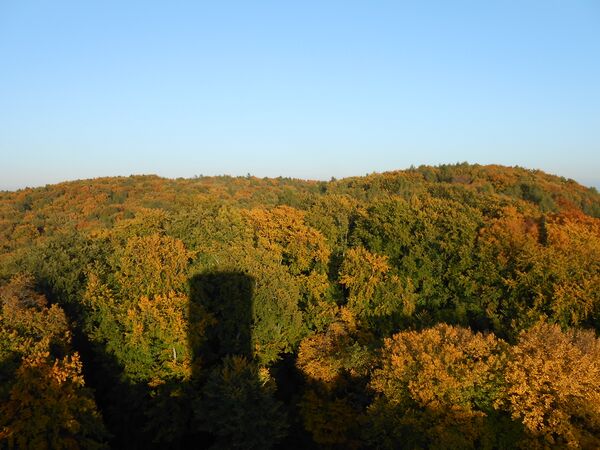 Наиболее показательной частью замка является четырехэтажная башня на плане круга, высотой около 30 м, которая является самой старой частью здания и датируется второй половиной XIII — началом XIV века. Сначала она была типичным донжоном, то есть отделенным оборонительным элементом, расположенным вблизи с воротами и предназначенным для усиления ее военного потенциала, а также последним пунктом сопротивления во время захвата крепости. Это типичное оборонное решение, которое широко применялось в средневековых крепостях. Вход в башни находился на значительной высоте — примерно посередине башни. В XV веке башня была перестроена и включены в конструкции верхнего замка. Тогда же было приспособлено к тогдашним военным требованиям, путем создания на отдельных этажах пушечных отверстий, предназначенных для тарасниц. Таким образом, замок можно было защищать на определенном расстоянии огнем из башни по прилегающим районам. Нижние части башни содержали тюремные подземелья, в которые приговоренных спускали через отверстие в полу, находящееся неподалеку от ее входа. Внутри башни можно было передвигаться по узким и извилистым каменным ступеням. Верхний ярус башни не сохранился — на верхушке нынешней башни виднеются следы от него в виде каменных опор, которые поддерживали стену внушительной толщины. Башня имела наклонную коническую крышу. В наше время на вершине башни находится смотровая площадка, огражденная металлическими перилами, которая открыта для посещения туристами.