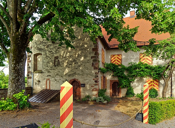 Замковый комплекс возвышается на 10 метров над горловым рвом, который ныне используется как парковка. Здания в задней, самой старой части комплекса с паласом содержат элементы бергфрида. Через замковую таверну можно попасть на западную платформу, ныне служащую террасой.