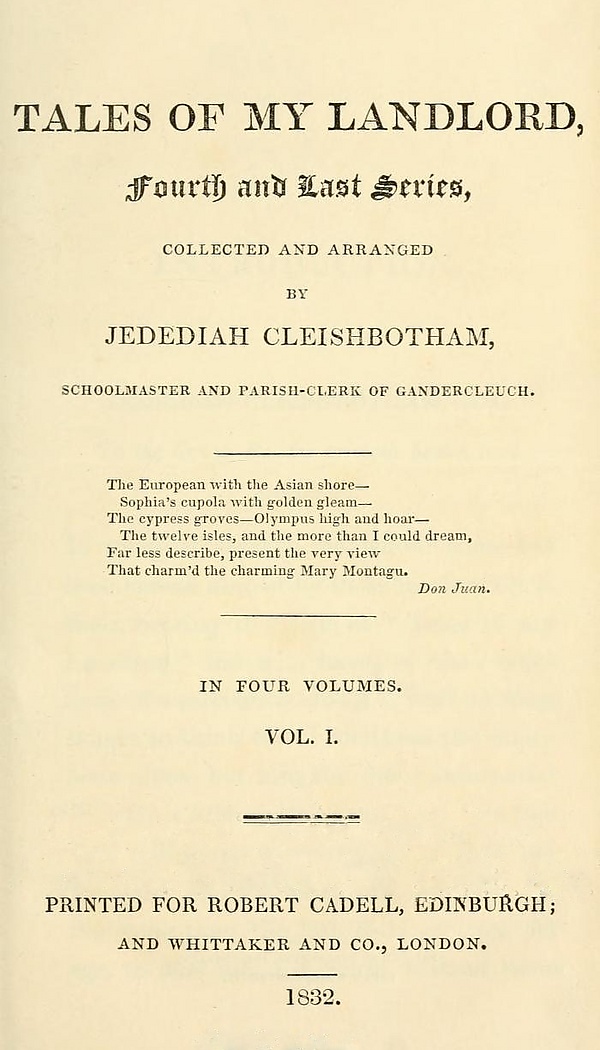 В том же году Скотт вместе с дочерью Анной уехал в Италию, чтобы поправить пошатнувшееся здоровье. В 1832 году он вернулся и 21 сентября умер в своём поместье Эбботсфорд[4].