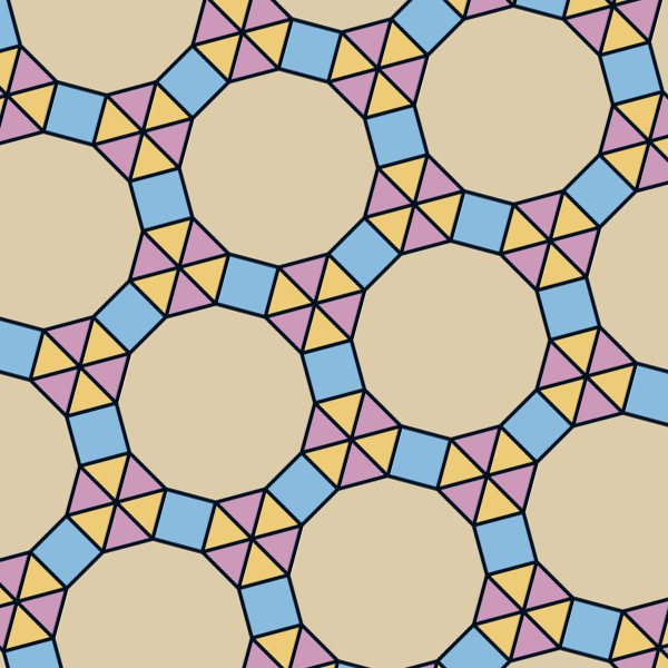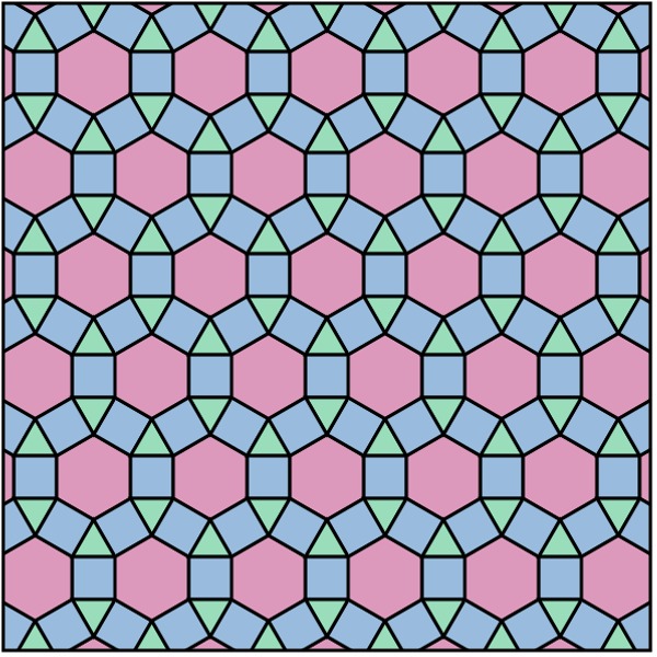 Паркеты, состоящие из правильных многоугольников двух или более типов, такие, что для любых двух вершин паркета существует преобразование симметрии (самосовмещение), переводящее одну из них в другую, называются полуправильными паркетами (англ. semiregular tilings) или архимедовыми паркетами[9][15][16][17].