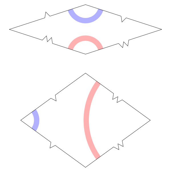Первое, «локальное» определение, заключается в том, что вершинные конфигурации всех вершин должны совпадать. Иными словами, последовательности граней вокруг любых двух вершин паркета должны быть одинаковыми: одни и те же многоугольники должны идти в одном и том же (или в противоположном) порядке.