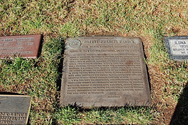 Дэррил Ф. Занук умер от рака в Палм-Спрингс, Калифорния, в 1979 году в возрасте 77 лет, похоронен на кладбище Вествуд.