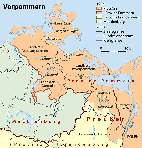 В 1720 году по стокгольмскому трактату шведы уступили Пруссии большую часть западной Померании, с островами Волином и Узедомом; остальные владения Швеции (шведская Померания) — между Мекленбургом, Балтийским морем и рекой Пене — отошли к Пруссии по Венскому трактату 1815 года[1].