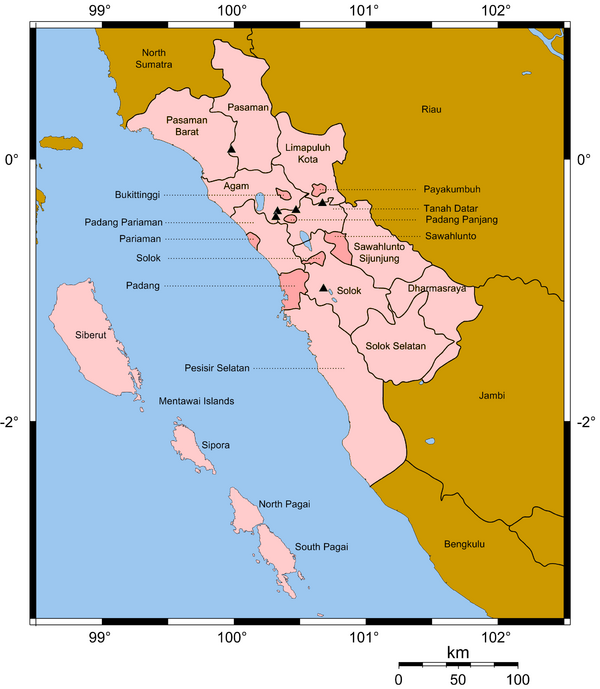 Провинция Западная Суматра делится на 12 округов и 7 городских муниципалитетов: