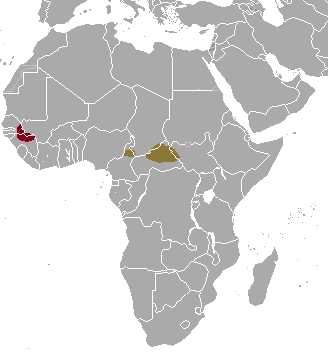 - T. d. gigas Heuglin, 1863. Выделяется песочным оттенком шерсти и несколько более крупными размерами. Количество белых полос около 12. Распространён в Камеруне, ЦАР, Чаде и Судане[9].