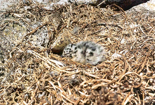 В период гнездования пары западных чаек активно обороняют свой ареал от сородичей. Самка откладывает три яйца в углубление в земле и насиживает их около месяца. Птенцы остаются в гнезде до обретения способности летать. Беспризорные птенцы либо поедаются соседними парами, либо, наоборот, ими усыновляются. Продолжительность жизни западной чайки может достигать 25 лет, хотя в среднем она живёт около 15 лет.