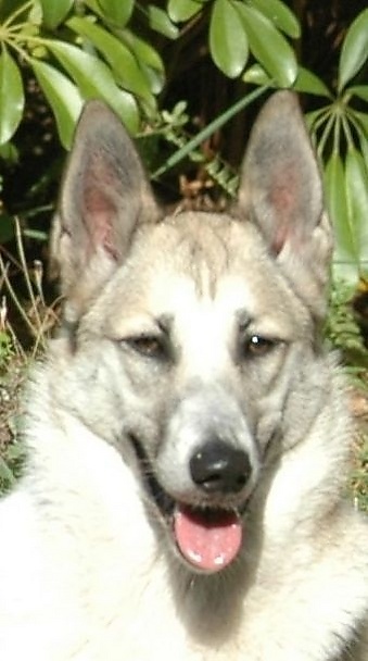 Голова при взгляде сверху остро-клинообразная, приближающаяся по форме к вытянутому равнобедренному треугольнику, с умеренно широкой черепной коробкой. У сук голова уже. Морда острая, длинная, но не узкая, с некоторым расширением в области клыков. Переход ото лба к морде выражен, но не резко. Мочка носа чёрная, у белых собак может быть коричневой. Уши стоячие, подвижные, поставлены высоко. Глаза небольшие, овальные, тёмно-карие, с косым разрезом век, сидят несколько глубже, чем у других пород лаек[9].