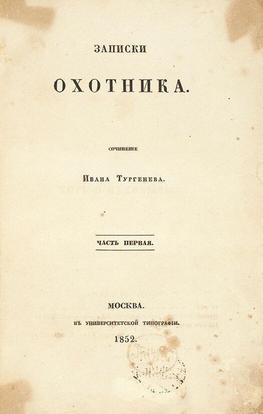 В 1852 году «Записки охотника» вышли отдельной книгой.[6] Её выход имел последствия для чиновника цензурного ведомства Владимира Львова, давшего разрешение на выпуск сборника. Львова сняли с должности, а для его коллег было издано специальное распоряжение с указанием: «Так как статьи, которые первоначально не представляли ничего противного цензурным правилам, могут иногда получить в соединении и сближении направление предосудительное, то необходимо, чтобы цензура не иначе позволяла к печатанию подобные полные издания, как при рассмотрении их в целости»[7].