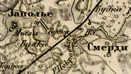 ЗАПОЛЬЕ — деревня, принадлежит штабс-ротмистру Николаю Смирнову, число жителей по ревизии: 37 м. п., 39 ж. п.