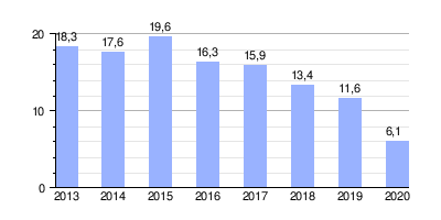 ▼ 53 пассажирских, 1 служебный (2020)[4] |
