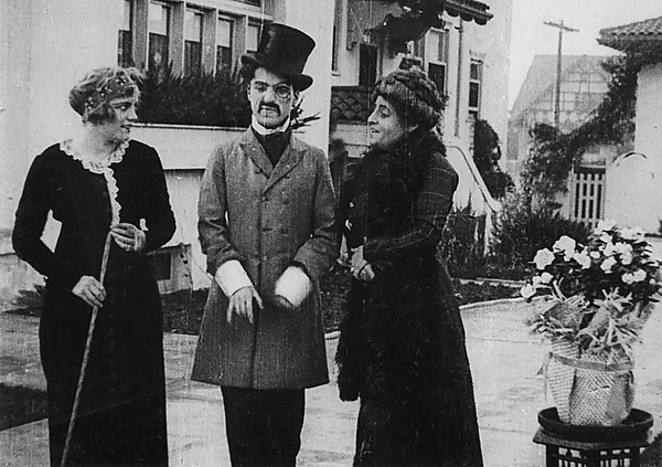 Суетливый, грубо жестикулирующий молодой артист в своей первой роли у Саннета мало чем напоминал флегматичных персонажей комических пантомим Карно. А большие, свисающие усы и бачки, монокль и цилиндр, длинный сюртук и лакированные ботинки делали его почти антиподом будущего неизменного героя Чаплина.