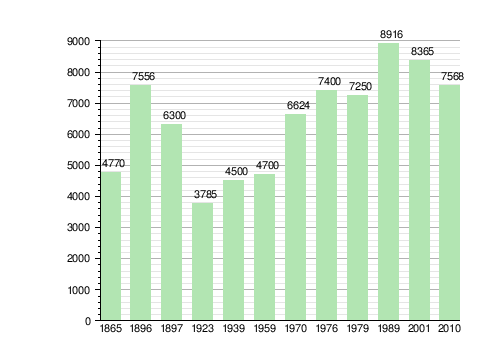 В 1991 году насчитывалось 9,3 тысяч жителей, в 2006 году — 8 тысяч; ныне 7694 (2008)