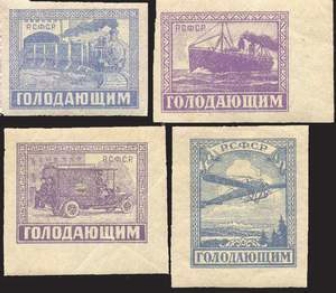 В ноябре 1922 года эскизы, поданные Р. Зариньшем на конкурс «Четыре способа отправления» в 1914 году, были использованы для почтово-благотворительного выпуска «В помощь населению, пострадавшему от неурожая» (ЦФА [АО «Марка»] № 50—53).