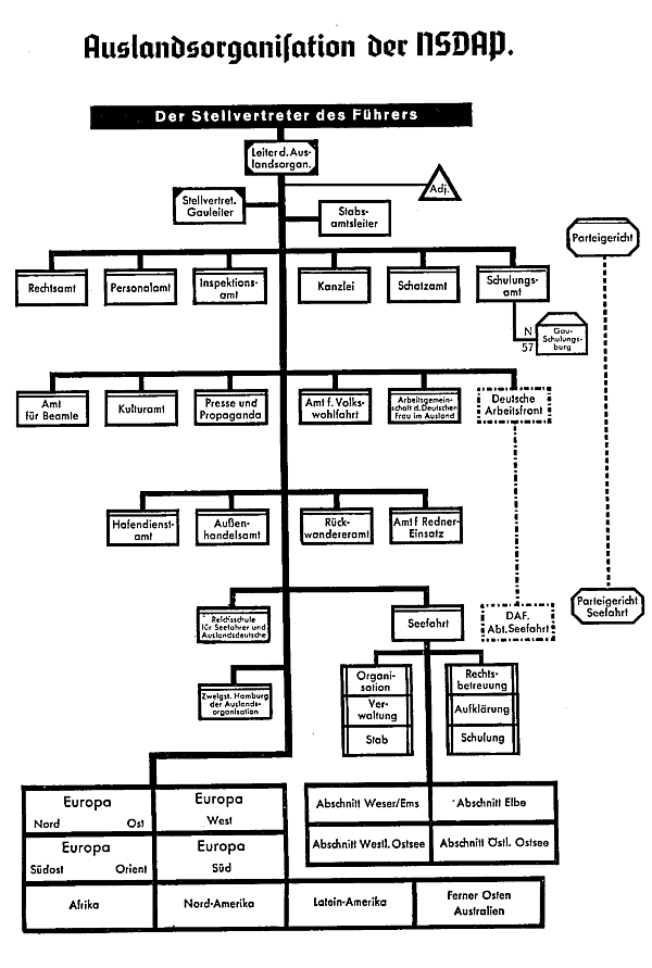 Кроме того, в Центральном аппарате НСДАП/АО действовали ведомства, координировавшие работу за рубежом по линии различных подразделений НСДАП: