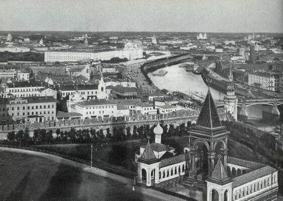 Стоит только спуститься по одной из лестниц, идущих от Варварки, вниз по направлению к той стене Китай-города, которая примыкает к Москве-реке. Из кварталов европейского типа вы сразу попадаете в трущобный мир старой Москвы. Тут все характерно: и грязные кривые переулки, и двухэтажные, с обсыпавшейся штукатуркой, жалкого типа домишки, сплошь облепленные примитивными вывесками»