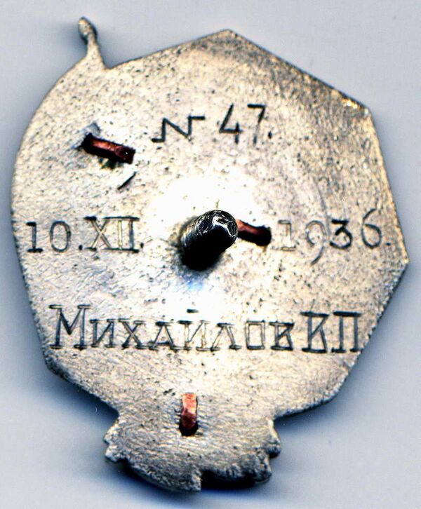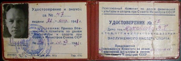 Знак и удостоверение, вручённые Виктору Михайлову, первому боксёру — заслуженному мастеру спорта (1936)