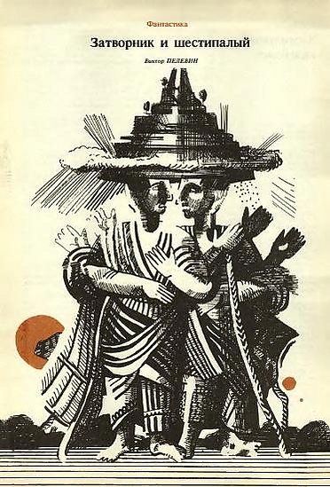 Повесть «Затворник и Шестипалый» содержит множество элементов жанра антиутопии. Мир здесь представлен в виде птицефабрики и подчинён социальной иерархии в зависимости от близости к кормушке. В этом прослеживается сходство с повестью Джорджа Оруэлла «Скотный двор». Изгнание Шестипалого из общества приводит его в итоге к осознанию, что все здешние обитатели обречены на смерть и в конечном счёте к спасению. В произведении отчётливо воплощён круг сансары: по замкнутой конвейерной ленте двигаются контейнеры, где цыплята после вылупления откармливаются, и при подходе к цеху номер один забиваются, после чего цикл повторяется снова[5].