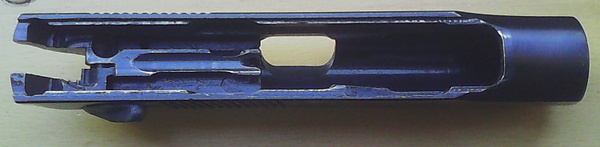 - Расцепленный со стволом затвор теперь может отойти назад, осуществляя открывание канала ствола, то есть, открывая к нему доступ для осуществления перезаряжания.