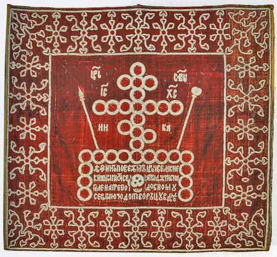 - хоругви и подвесные пелены с изображениями Богоматери, Св. Троицы, святых Димитрия Солунского, Никиты Воина (ГТГ, ПЗИХМЗ, КБМЗ);