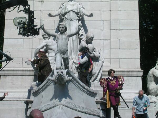Первая сцена в Нью-Йорке, в которой Жизель появляется из канализационного колодца, была снята в центре площади Таймс-Сквер (Times Square). На площади постоянно находилось огромное количество людей, контролировать которых было очень сложно, поэтому в этом эпизоде было решено снять простых прохожих вместе с размещёнными на переднем плане актёрами массовки[27]. Толпа обычных людей, наблюдающих за актёрами, также снята в эпизодах с участием Джеймса Марсдена и Тимоти Сполла[28]. Однако самыми сложными, по признанию режиссёра Кевина Лимы, были съёмки музыкального номера «Так ты поймёшь» в Центральном Парке (Central Park). Из-за ненастной погоды на пятиминутный эпизод было потрачено 17 дней, из которых только семь были достаточно солнечными для проведения съёмок[8]. К тому же в процесс иногда вмешивались поклонники Патрика Демпси[14]. Хореографической постановкой номера, в котором было задействовано 300 человек массовки и 150 танцоров, занимался Джон О’Коннел (John O’Connell), работавший до этого над мюзиклом «Мулен Руж!» (Moulin Rouge!)[8].