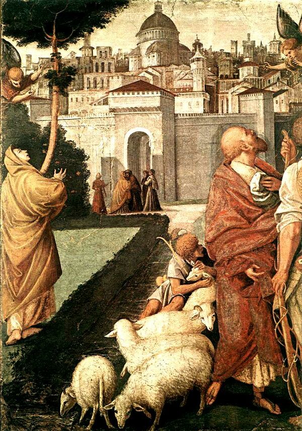 И вот Иоаким подошёл со своими стадами, и Анна, стоявшая у ворот, увидела Иоакима идущего, и, подбежав, обняла его, и сказала: Знаю теперь, что Господь благословил меня: будучи вдовою, я теперь не вдова, будучи бесплодною, я теперь зачну! И Иоаким в тот день обрел покой в своем доме.