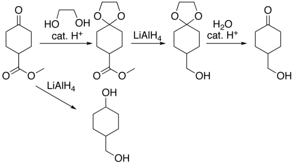 Примером защитных групп карбонильных соединений являются ацетальная и дитиановая группы.