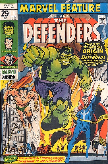 Защитники впервые собрались в качестве суперкоманды Marvel Marvel Feature № 1 (декабрь 1971), после чего остались работать в команде. После популярности пилотного номера Marvel Feature № 1, Marvel начала публиковать отдельную самодостаточную серию Защитники.